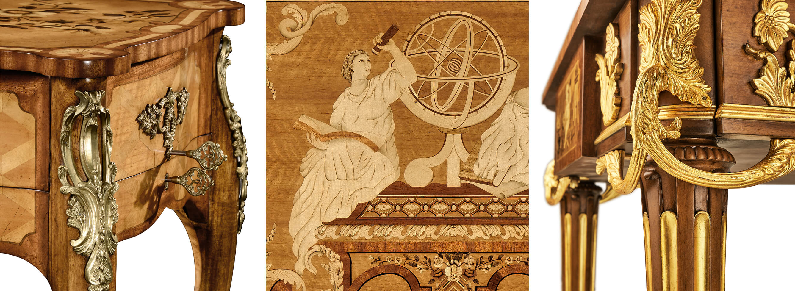 The collection consists of unique masterpieces crafted by gifted craftsmen. To honour their traditional craftsmanship and their magical eye for beauty, Jonathan Charles Signature collection is a limited edition of selected furniture pieces. Our craftsmen have paid the utmost attention to detail to replicate each piece. Finely hand cut marquetry, lost wax brass details and wood carved elements simply make each piece the centrepiece of your home. An exquisite masterpiece, which will be handed down from generation to generation.