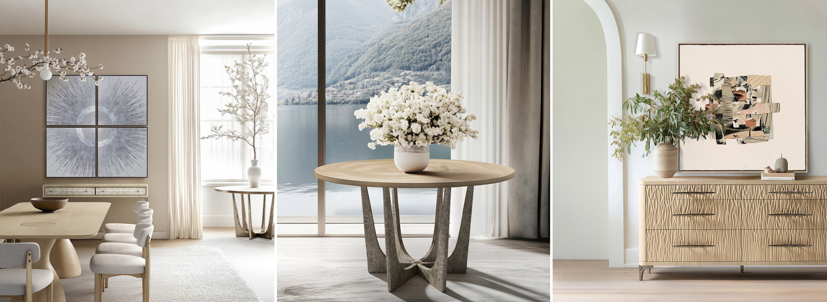 The Cynaria Sideboard captures the quiet drama of the sea, pairing refined geometry with organic artistry. Wrapped in a soft, whitewashed veneer, its minimalist form is punctuated by coral inspired hardware, each piece hand cast in our foundry. Resting on a textured metal base, the sideboard balance..